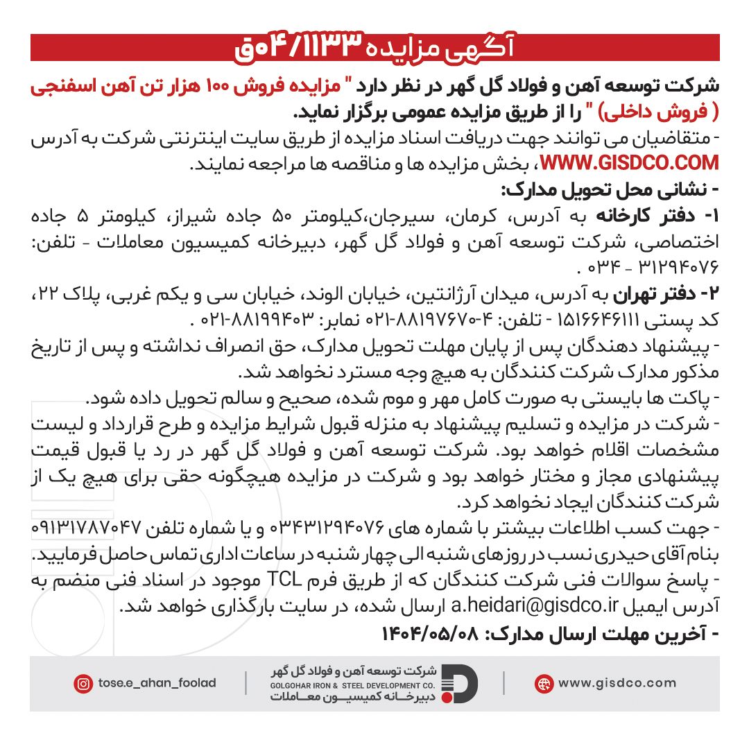 منبع : روابط عمومی توسعه آهن و فولاد گل گهر