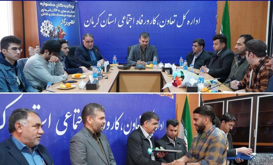 مراسم اختتامیه جشنواره فیلم هاي ۱۲۰ ثانیه ای در حوزه فرهنگ کار و تلاش با حضور مدير کل تعاون، کار و رفاه اجتماعی و مدیر عامل شرکت نگین گهر خاورمیانه و جمعی از تلاشگران عرصه هنر در سالن فجر اداره کل تعاون، کار و رفاه اجتماعی استان کرمان برگزار گردید. در پایان این مراسم از برترینهای این‌ جشنواره تجلیل بعمل آمد. شایان ذکر است این جشنواره با همت شرکت نگین گهر خاورميانه و اداره کل تعاون، کار و رفاه اجتماعی استان کرمان برگزار شد.