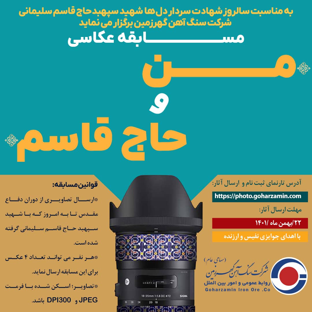 شرکت سنگ آهن گهرزمین بمناسبت سالروز شهادت سپهبد شهید حاج قاسم سلیمانی برگزار می نماید: