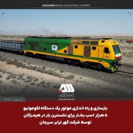 طی آئینی با حضور مدیر عامل شرکت معدنی و صنعتی گل گهر، بهره برداری از یک دستگاه لکوموتیو DF8BI و ۱۰۴ دستگاه تریلر کشنده پیلسان به همراه نیمه یدک در محل گهر پارک سیرجان کلید خورد.